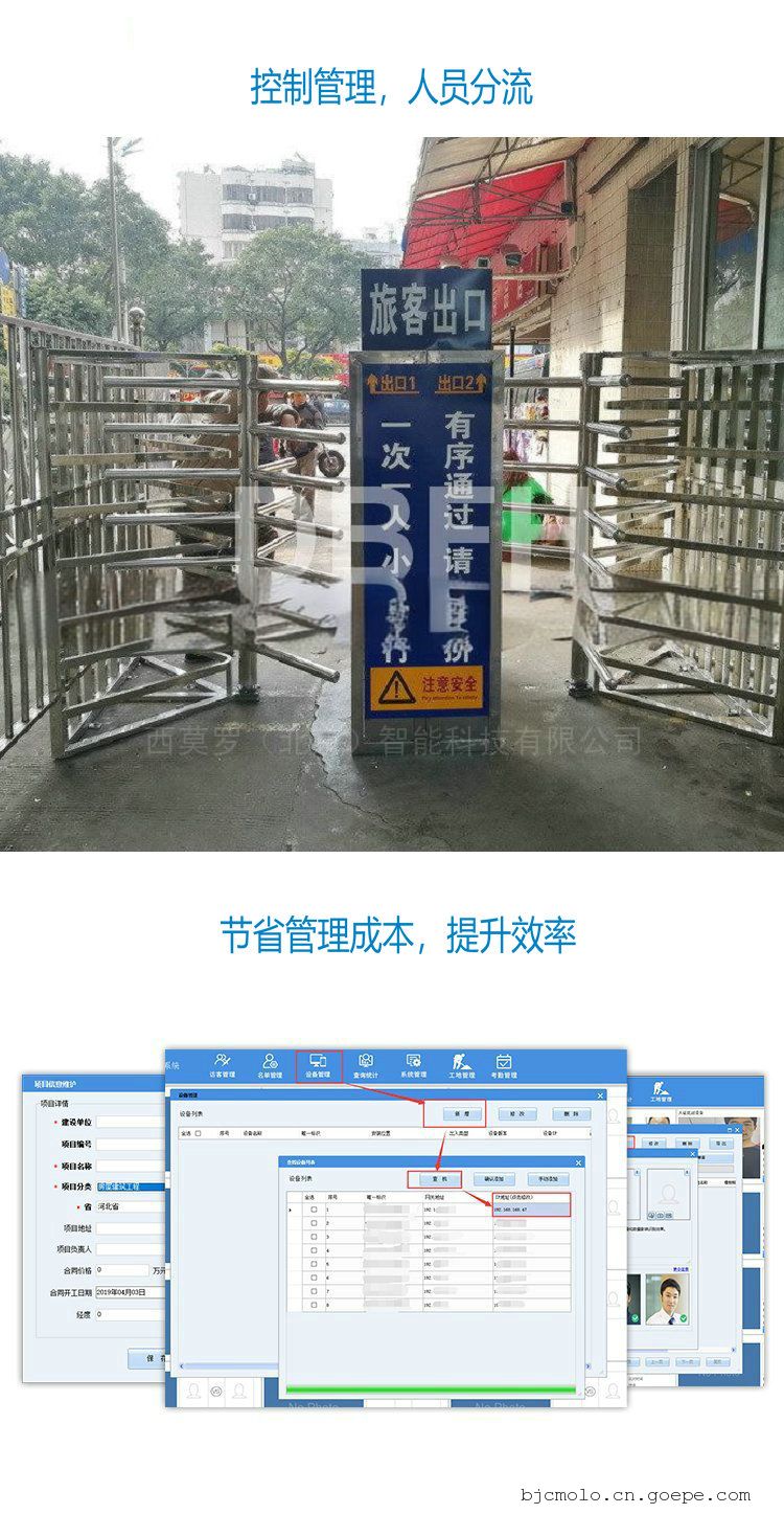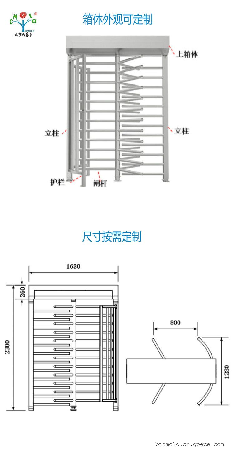 型号:cpw-221 品牌:西莫罗 感应方式:手动 规格:出入口控制 工作电源:220 环境温度:20-60 ℃ 汽车站火车站出口全高旋转闸机供应商北京西莫罗提供各种场景出入口闸机门禁设备。车站用全高旋转闸机一般分为全高旋转闸机和半高旋转闸机,根据需求可以用于火车站和汽车站等场景,当旅客刷卡通过闸机时,系统会进行验证通过手动或者自动旋转闸门,打开栅栏,乘客可以通过。如果乘客未通过验证或者没有刷卡,闸机将保持关闭状态,避免非法闯入。为了防止乘客翻越旋转闸机,车站采取了多种措施。首先,闸机的高度和栅栏的设计都是为了阻止乘客翻越。一般情况下,旋转闸机的高度约为2.3米,足够高以阻止大多数乘客翻越。